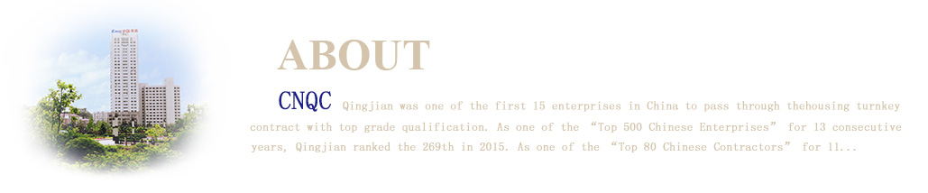 Qingjian was one of the first 15 enterprises in China to pass through the housing turnkey contract with top grade qualification. Qingjian ranked the 277th in the “Top 500 Chinese Enterprises”, ranked the 62th in the “ENR the Biggest Worldwide 250 International Contractors”. In 2005, Qingjian was granted the “National Quality Management Award” which was the third awarded construction enterprise; Qingjian won the “Enterprise management award in shandong province” in 2011; Qingjian won the first “Mayor Quality Awards of Qingdao City” in 2012. In recent years, Qingjian has attained over 300 honors and awards at or above provincial level including “China Famous Trademark”,“National Outstanding Construction Enterprise”, “National Customer Satisfaction Enterprise” and etc.