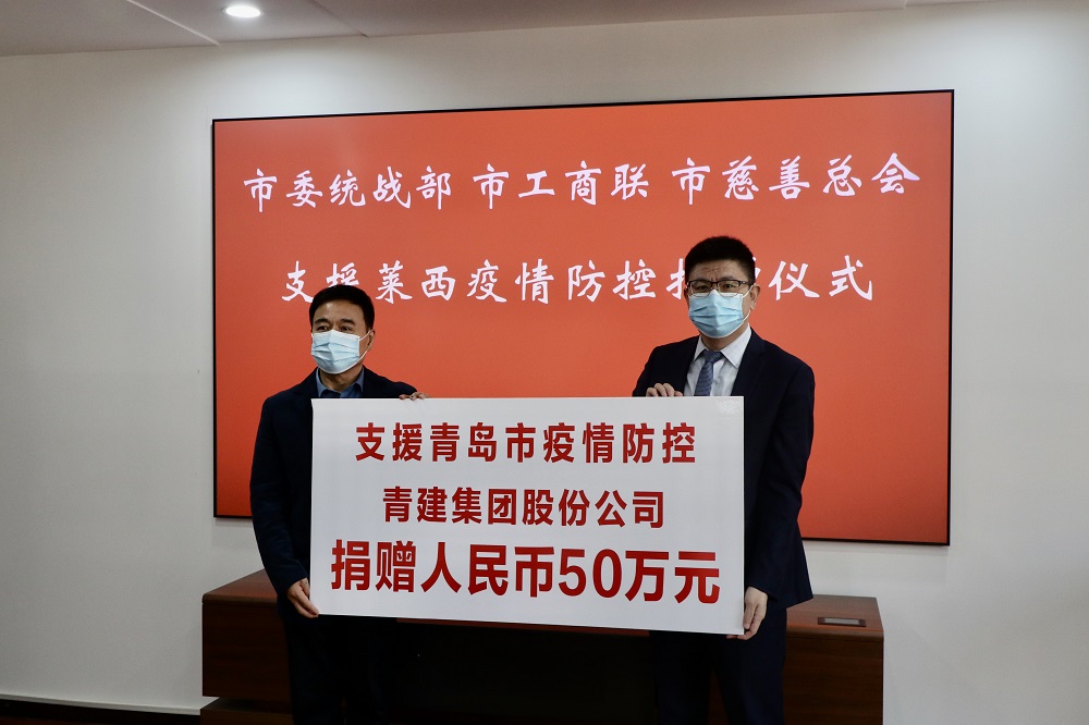 3月15日,青島市委統(tǒng)戰(zhàn)部、市工商聯(lián)、市慈善總會舉行了支援青島市疫情防控捐贈儀式。青島市慈善總會會長王偉、副會長郄晉生,青島市委統(tǒng)戰(zhàn)部副部長楊長軍,青島市委統(tǒng)戰(zhàn)部副部長、工商聯(lián)黨組書記劉青林,青島市工商聯(lián)黨組成員、副主席周雪燕,青島市慈善總會非公經(jīng)濟分會會長王吉春等領(lǐng)導(dǎo)出席儀式。青建集團股份公司董事會主席王從遠及其他捐贈企業(yè)代表參加儀式。