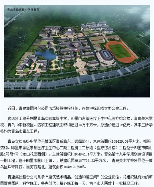 青島新聞網(wǎng):青建中標四項大型公建工程 19中美術(shù)學校均在列