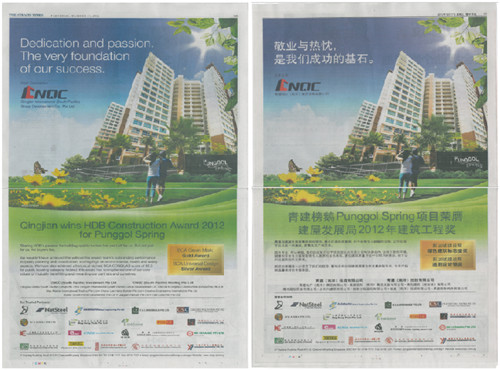 青建國(guó)際(南洋)集團(tuán)發(fā)展有限公司獲新加坡建屋局2012年建筑獎(jiǎng)