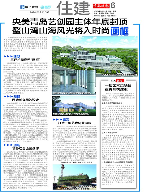 央美青島藝創(chuàng)園主體年底封頂鰲山灣山海風光將入時尚畫框