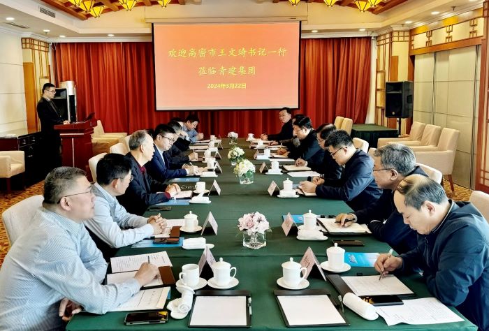 3月22日,高密市委書(shū)記王文琦,市委副書(shū)記、市長(zhǎng)王大偉到集團(tuán)走訪,高密市政府黨組成員、濰坊(高密)臨港經(jīng)濟(jì)發(fā)展服務(wù)中心黨組書(shū)記、主任付聯(lián)寶,市政府黨組成員、副市長(zhǎng)孫秀卿,市政府黨組成員、辦公室黨組書(shū)記、主任王賡,市住建局黨組書(shū)記、局長(zhǎng)李衍寶,市投資合作促進(jìn)中心黨組書(shū)記、主任薛永文陪同走訪。集團(tuán)杜波主席,董事長(zhǎng)王從遠(yuǎn)、總裁吳書(shū)義、常務(wù)副總裁萬(wàn)擎東、山東泰迅董事長(zhǎng)楊志明等參加座談。