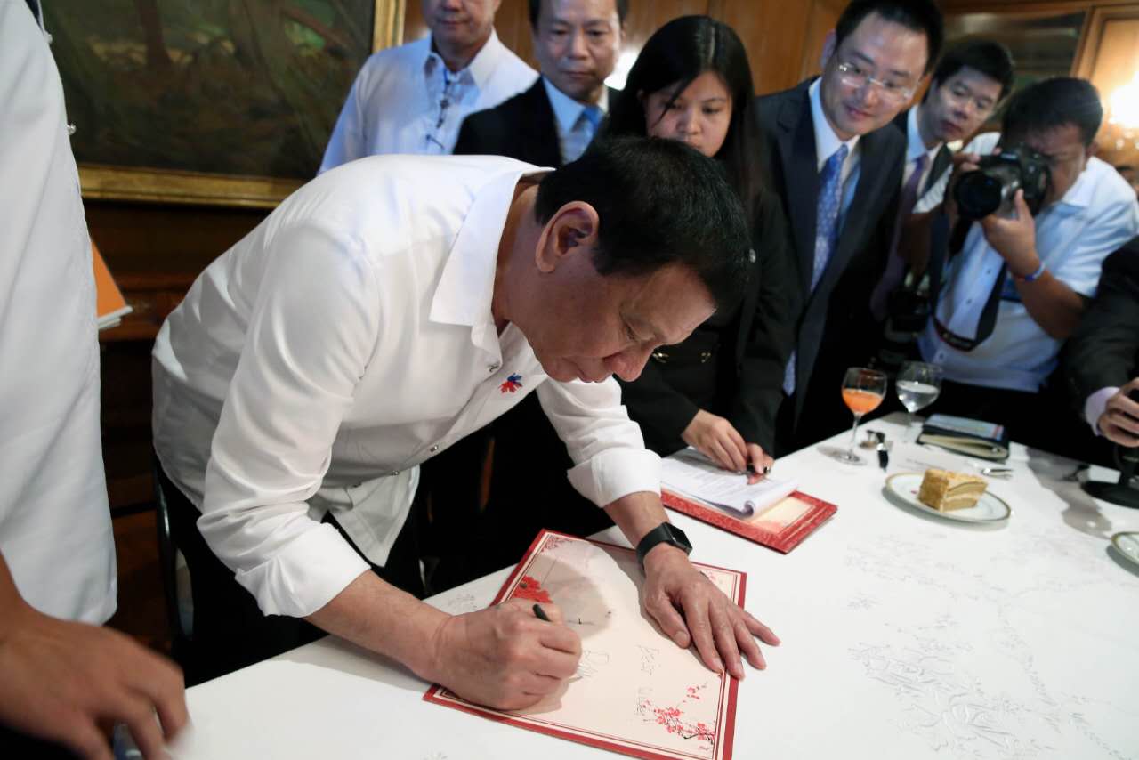 杜特爾特總統(tǒng)對(duì)青建集團(tuán)的業(yè)務(wù)布局、綜合實(shí)力和國(guó)際市場(chǎng)開(kāi)拓成就表示贊賞,對(duì)青建集團(tuán)多年來(lái)為菲律賓基礎(chǔ)設(shè)施建設(shè)所作出的努力表示肯定。杜特爾特總統(tǒng)表示,菲律賓政府歡迎青建集團(tuán)深入?yún)⑴c當(dāng)?shù)鼗A(chǔ)設(shè)施建設(shè)和投資,菲政府將為青建集團(tuán)等中資企業(yè)在菲發(fā)展提供公平的環(huán)境和高效的服務(wù)。會(huì)談結(jié)束后,杜特爾特總統(tǒng)欣然提筆為青建題詞:BEST WISHES!(最美好的祝福!)。