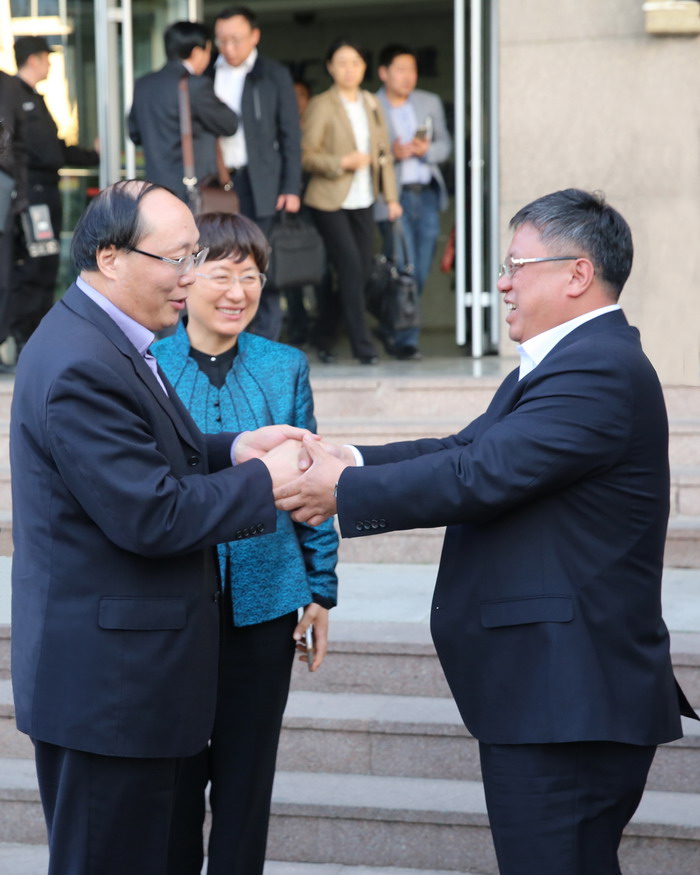 全國工商聯(lián)副主席王永慶,山東省副省長王隨蓮與青建集團董事長王賢茂親切交談