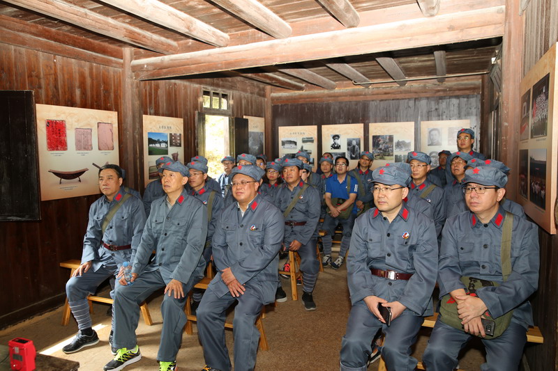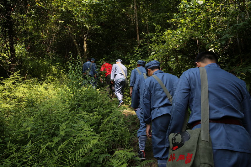 培訓班設置了重走朱毛挑糧小道體驗課程,課程安排在當年紅軍從寧岡挑糧上山道路中最為險峻的一段,全長3200米,翻越多個山頭,路為羊腸小道,包含陡峭山石、亂雜竹林、茂密草地、險峻木橋等路況,學員們激情似火、斗志高昂,經(jīng)過兩個多小時完成體驗課程,許多學員軍服被汗水浸透、褲腳掛滿泥土、手上被蚊蟲叮起大包,用親身經(jīng)歷感受革命斗爭的艱辛。