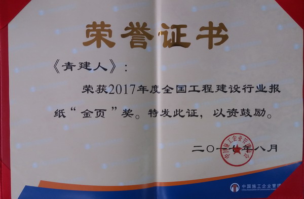 會議表彰了2017年度工程建設行業(yè)優(yōu)秀通訊員、聯(lián)絡員,并現(xiàn)場評選出工程建設行業(yè)報紙和期刊類“金頁獎”和“銀頁獎”。集團企業(yè)報《青建人》參加報紙類評選,并再次獲評“金頁獎”,企業(yè)報主編趙安朵獲評全國工程建設行業(yè)優(yōu)秀通訊員?!肚嘟ㄈ恕芬堰B續(xù)七年獲得“金頁獎”稱號,獎項的獲得是對《青建人》辦報理念和集團文化宣傳建設工作的肯定,也是對《青建人》編委會、編輯部及各級通訊員工作的褒獎?!肚嘟ㄈ恕穼⒗^續(xù)踐行“揚誠信文化,寫做強之意;解管理之道,發(fā)和諧之聲;抒豪邁之情,展職工風采;錄發(fā)展之史,樹百年品牌”的辦報宗旨,發(fā)揮集團內(nèi)部宣傳和文化引導的紐帶作用。